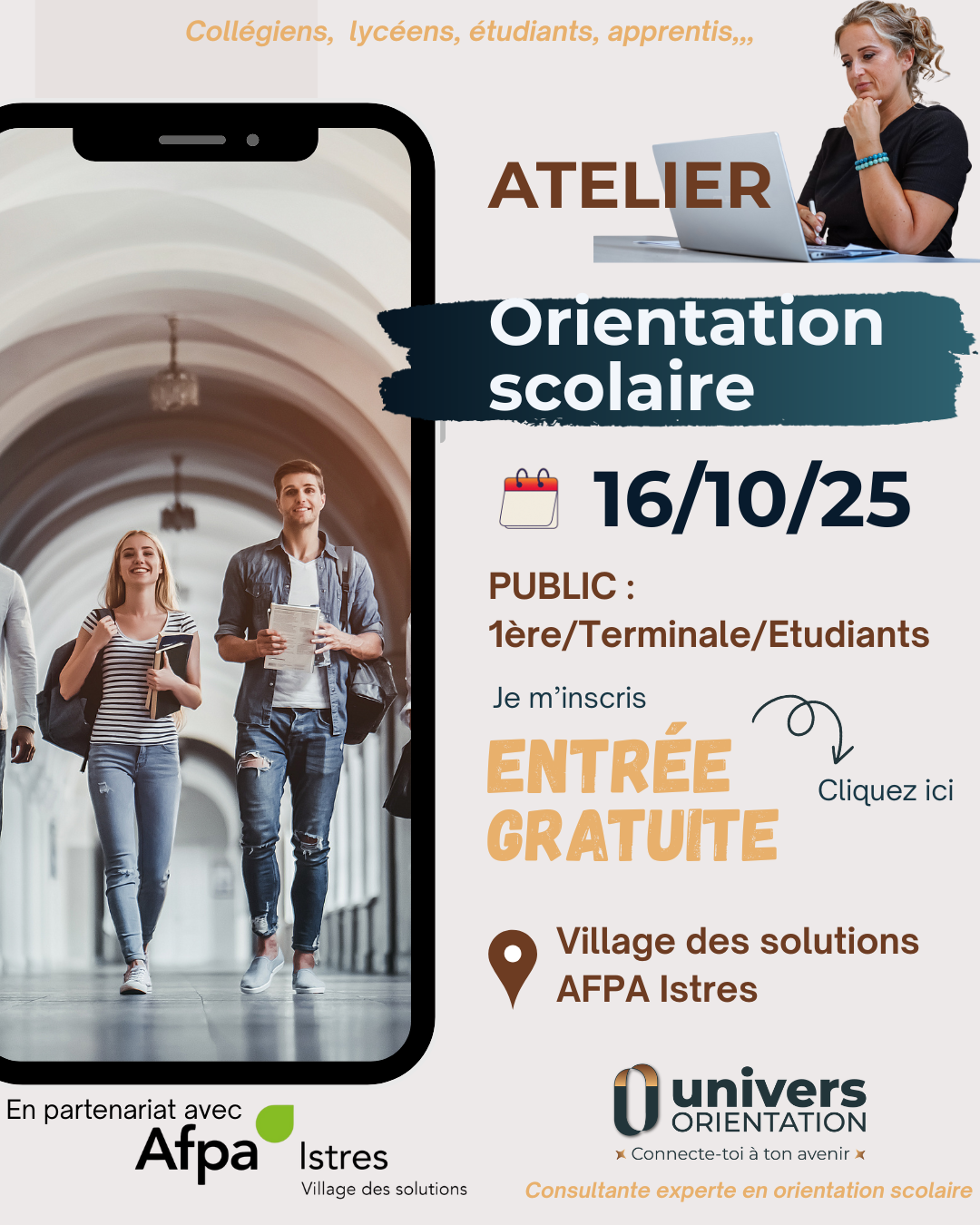 Ensemble, nous trouverons la meilleure orientation pour toi, celle qui te ressemble ! Mon agence Univers Orientation accompagne les jeunes de 15 à 25 ans (collégiens, lycéens, étudiants) pour éclaircir leur orientation scolaire ou réorientation vers un autre parcours d’études.